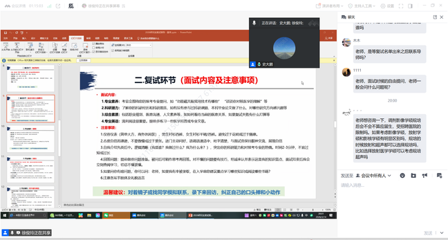 互动答疑环节,现场氛围热烈,学子们围绕复试专业提问、调剂细节、导师联系技巧等个性化问题向两位教授请教。两位教授耐心倾听、逐一细致解答,结合自身经验给出切实可行的建议,既缓解了学子的考前焦虑,也为大家指明了备考方向,让在场学子受益匪浅。