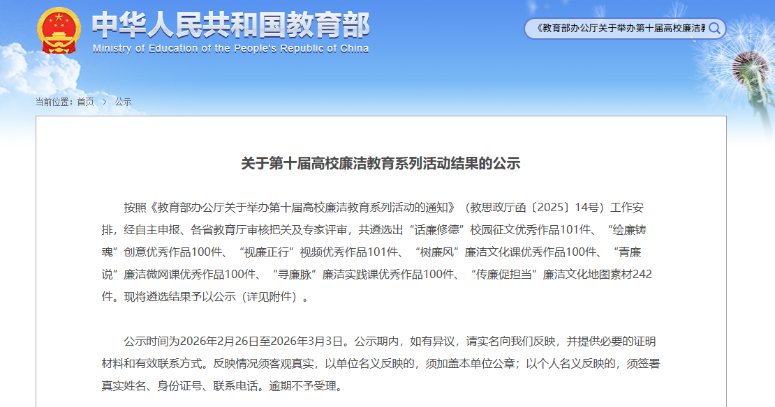 近日,教育部发布《关于第十届高校廉洁教育系列活动结果的公示》,我校羲和书院党委推荐张越同学创作的文创作品《“莲”洁书签套装》成功入选“绘廉铸魂”创意优秀作品名单。这是我校首次在该项全国性活动中斩获殊荣,实现历史性突破。