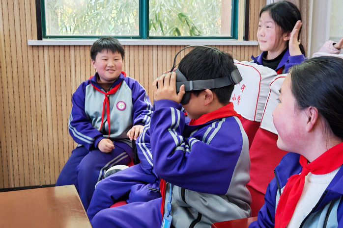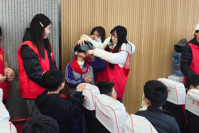 为创新红色教育形式,让红色基因真正浸润童心,志愿者们依托科技手段,搭建临时“移动红色VR体验馆”,带领孩子们沉浸式回望革命历史。孩子们在志愿者的悉心指导下,有序佩戴VR设备,身临其境地感受抗日战争、解放战争时期的峥嵘岁月。逼真的视觉体验与厚重的历史氛围,让孩子们深受震撼,真切感悟革命先辈的爱国情怀与奉献精神。此次科技+红色教育的创新形式,既拓宽了孩子们的知识视野,激发了科学探索兴趣,更引导他们从小树立爱党爱国、奋发向上的理想信念,让红色薪火代代相传。