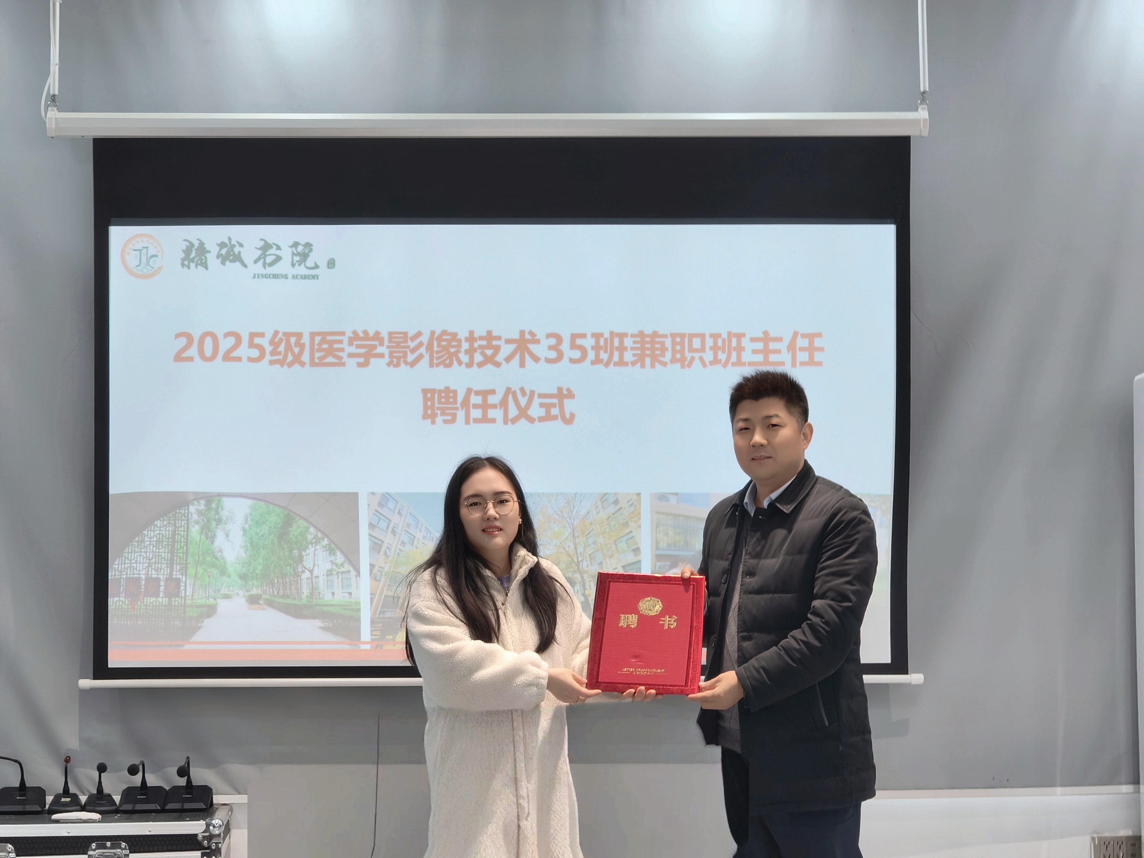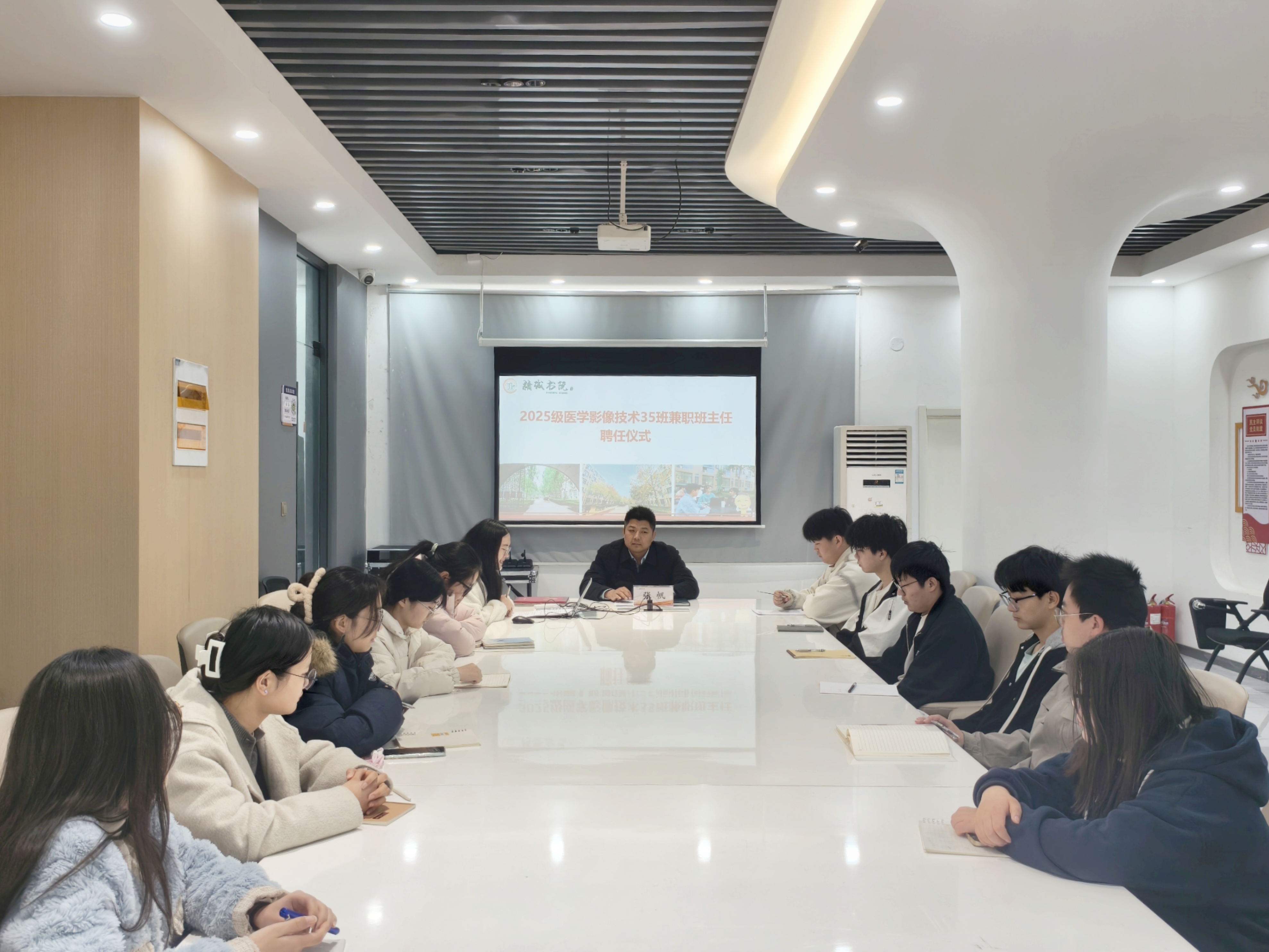 为深入落实立德树人根本任务,强化班级育人体系建设,传承红医精神、厚植家国情怀,引导医学学子坚定理想、锤炼本领、守护人民健康,3月17日,精诚书院举行2025级医学影像技术35班兼职班主任聘任仪式。学生处处长张帆受聘担任该班兼职班主任。