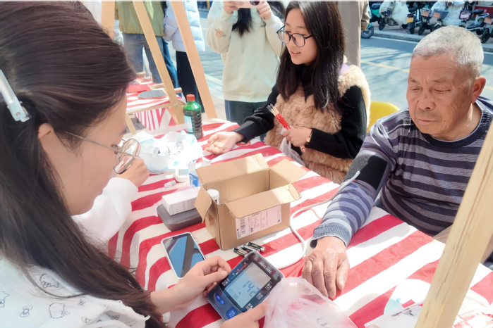 作为本次活动核心亮点,“雷锋精神传薪火,科创筑梦暖市集” 五大互动板块同步亮相,集公益、科普、运动、急救、科创于一体,让志愿精神可感可触、入脑入心。“闲置续温暖,知识悟雷锋”摊位人气高涨,学子踊跃捐赠旧衣旧书,兑换绿植、蔬菜,实现资源循环与爱心传递。“‘乒’搏健康,趣味投‘乓’”板块设置乒乓球颠球、趣味投篮等项目,同学们在运动中释放活力、增进协作,将阳光体育精神与志愿同行理念深度融合,展现蓬勃向上的青春风貌。急救科普专区成为热门打卡点,志愿者为校园保洁人员开展爱心义诊,提供血压、血糖检测等健康服务,把医学专业知识转化为守护生命的坚实力量,传递校园温情与医者担当。科创体验区亮点纷呈,无人机凌空展示、机器狗互动体验等项目点燃探索热情,同学们近距离感受科技与医学融合的魅力,以科技之力拓展志愿服务新边界。活动同步开展反非法传教、校园交通安全宣讲,引导师生增强安全意识、遵守校园规范,共同营造文明、安全、和谐的校园环境,以志愿行动守护校园平安。