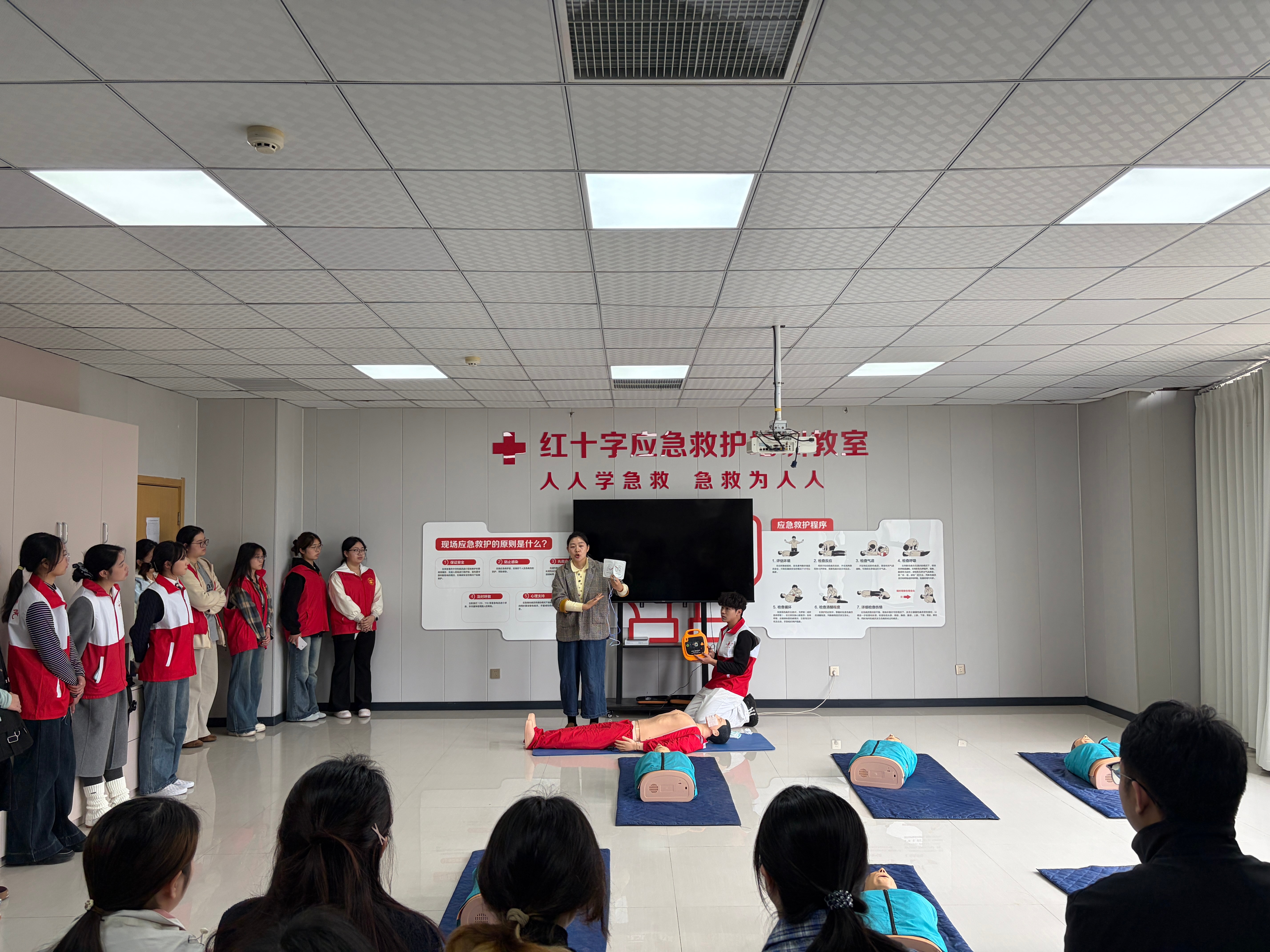 王娅如老师结合丰富的临床经验和真实急救案例,系统讲授了心肺复苏术与AED的联合使用、海姆立克急救法的核心要点,以及多场景下的自救互救技巧。培训注重拆解操作背后的医学原理,强化动作规范与教学要点,并针对成人、儿童、婴儿等不同人群,细致梳理急救手法的差异与适用场景,帮助志愿者在精通技能的基础上,准确把握教学重难点。