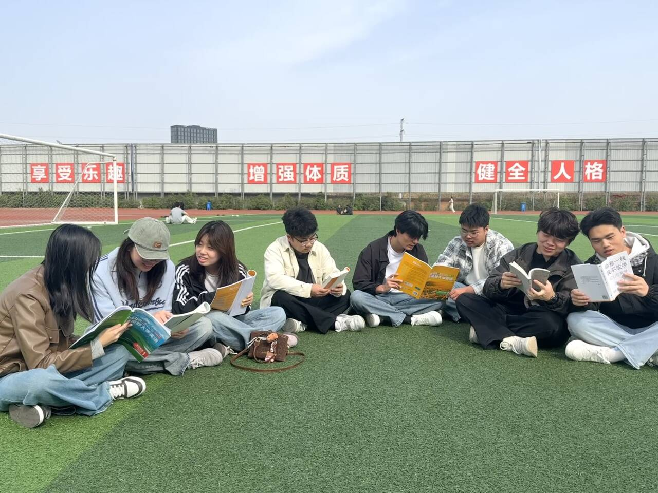 活动期间,书院精心策划并组织学生开展线下“春日读书分享会”系列活动,各班依托主题班会、课余闲暇等时段,带领学子诵读经典篇章,深度体悟修身立德、善待生命、勤学笃行的深邃内涵。春日煦暖,光影斑驳,2025级护理学专业部分学子围坐于操场共读,在墨香文字的流转间汲取阅读力量,在思想的碰撞交流中树立积极健康的生命观,将诚信友善、尊师孝亲、自强自立等优良品行真正内化于心、外化于行,让品德修养扎根心底、融入日常。“此次户外集体围读,不仅让我领略了书中的文字之美与思想之深,更感受到了集体阅读独有的温暖与力量,这份阅读带来的心灵滋养,将长久伴我前行。”学子林子涵深有感触地说道。