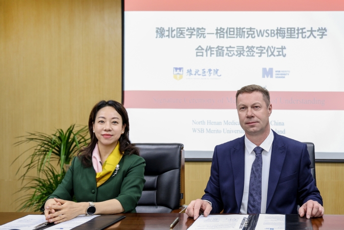 Artur Kozłowski对我校的热情接待表示感谢,并系统介绍了格但斯克WSB梅里托大学的发展历程、优势学科及国际化发展战略。他指出,两校在医学教育、人才培养等领域各具优势,合作前景广阔,期待共同探索医学教育国际化发展的创新路径。随后,双方围绕合作细节展开深入讨论,达成广泛共识。李琼和Artur Kozłowski代表两校签署《豫北医学院和波兰格但斯克WSB梅里托大学合作备忘录》,为后续开展务实合作奠定了坚实基础。