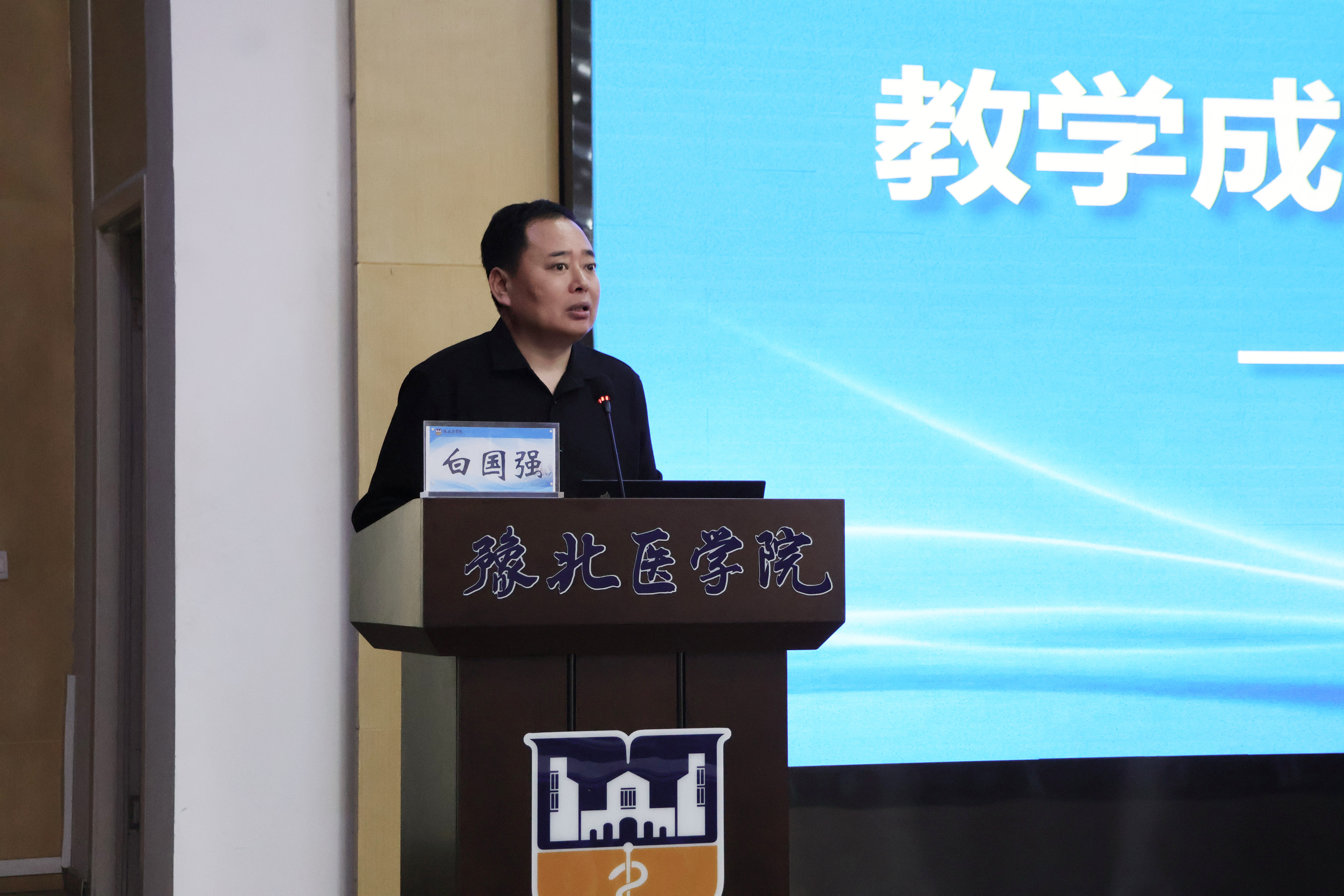 白国强在主持讲话中指出,教学成果奖是衡量学校教育教学水平的核心标志,当前正值我校谋划新一轮教学改革与成果培育的关键时期。他强调,学校历来重视教学改革,已在“双院制”育人、产教融合、专业集群建设等方面积累了良好基础,累计获得省级教学成果奖10余项。面对更高发展要求,他要求各单位以此次培训为契机,认真消化吸收专家智慧,聚焦真问题,组建团队,潜心培育,力争在高级别教学成果奖上实现新突破,为学校高质量发展和服务“健康中原”战略贡献力量。