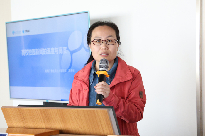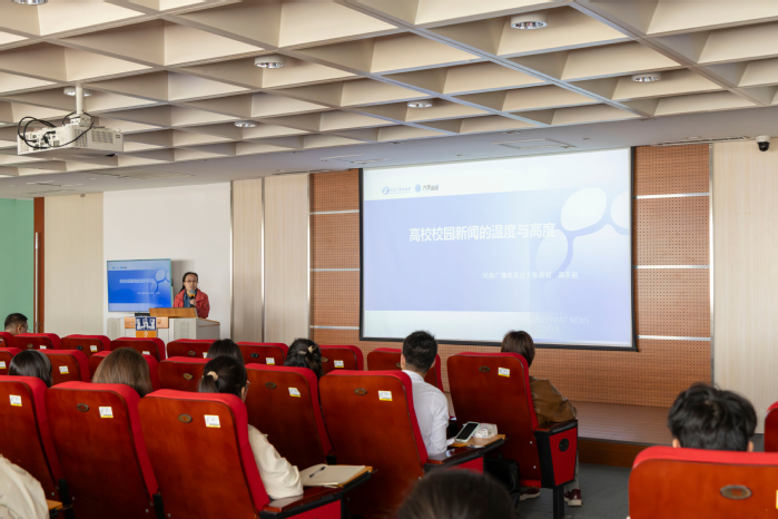 高冬丽主任以《高校新闻的温度与高度》为题,用一线记者的专业视角,系统讲解校园新闻的选题立意、叙事表达与价值引领。她提出,好新闻既要站稳立场、彰显高度,也要贴近师生、传递温度,用真实故事打动人心,用优质作品讲好校园故事。深入浅出的讲解、鲜活典型的案例,一次次赢得全场热烈掌声。