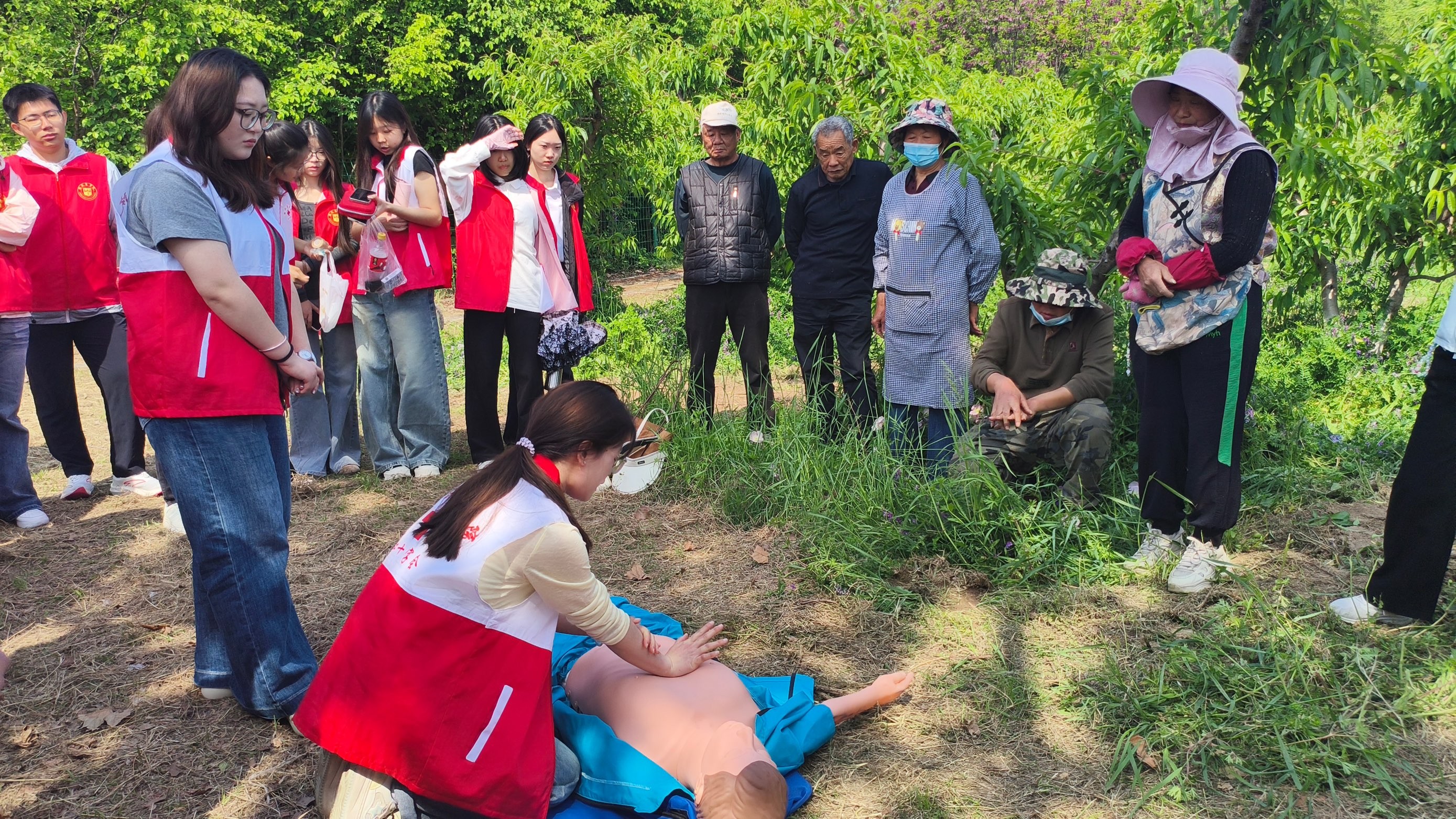 田间地头,实践课堂暖意融融。针对户外劳作易出现的中暑、外伤、关节劳损等常见健康问题,志愿者们结合医学专业知识,现场开展心肺复苏、外伤包扎、应急救护等实用技能示范讲解,细致讲解日常防护、应急处置等健康常识,耐心解答田间劳作人员的健康疑问。