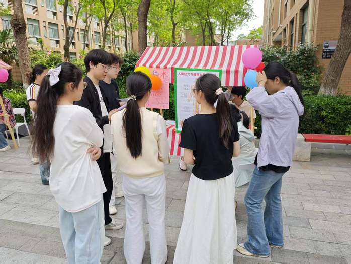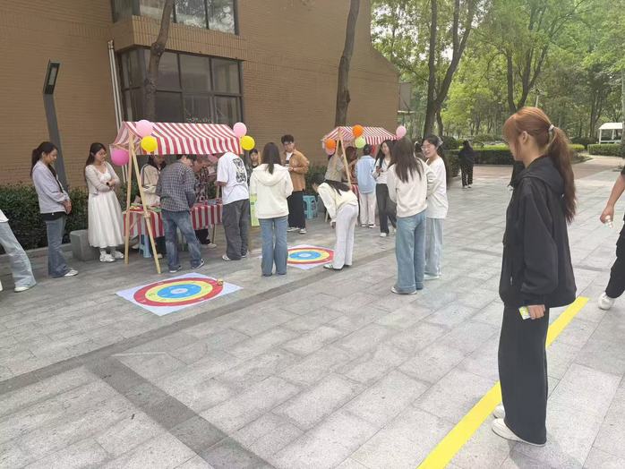 创意满分的“践奉献——生命健康沙包闯关”健康知识问答摊位,将趣味沙包投掷游戏与健康知识问答有机结合、寓教于乐。同学们奋力投掷沙包、精准瞄准命中靶盘,随即抽取涵盖科学护眼、规律作息、久坐防护、创伤应急处理等实用内容的健康知识题目;在投掷、思考、作答的过程中轻松牢记,真正实现玩得尽兴、学得扎实。